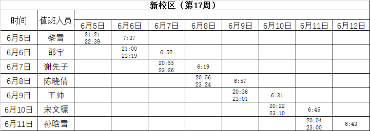 2022-2023学年第二学期第16-17周学工人员寝室值班通报