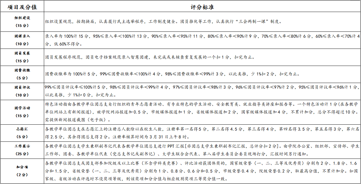 “五四红旗团总支”评分细则(修订版)