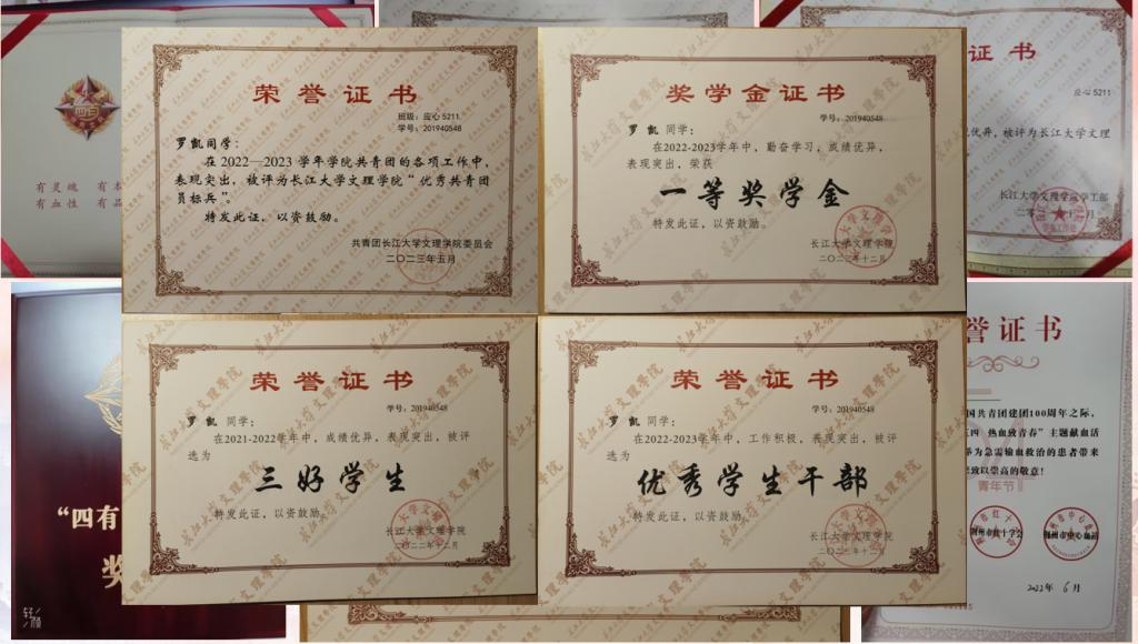 勤能补拙是良训,一分辛劳一分才。大一学年,他的综合测评为专业第一,荣获公司“一等奖学金”和“三好员工”等荣誉。积极带头参加各项学科竞赛,获得第十七届全国老员工征文比赛省一等奖、第十三届全国老员工电子商务“创新、创意及创业”挑战赛省级二等奖、全国老员工英语竞赛优秀奖,顺利通过普通话二甲、英语四级考试。学习之余,积极投身于志愿服务活动,以奉献之我为构建新时代筑力。他先后参与了荆州市首届楚文化节、荆州市“曹灿杯”青少年朗诵展示、走进社区——慰问抗战老兵、2022年全国科技志愿服务示范团队等志愿服务活动,还积极组织了暑期三下乡—圆梦工程“农村未成年人优秀传统文化传承志愿服务”、荆州市科技馆志愿服务、荆州市特殊教育公司志愿服务及荆州市为流浪小动物募捐志愿服务等50余项志愿服务活动。个人累计志愿时长也达到了1100个小时。