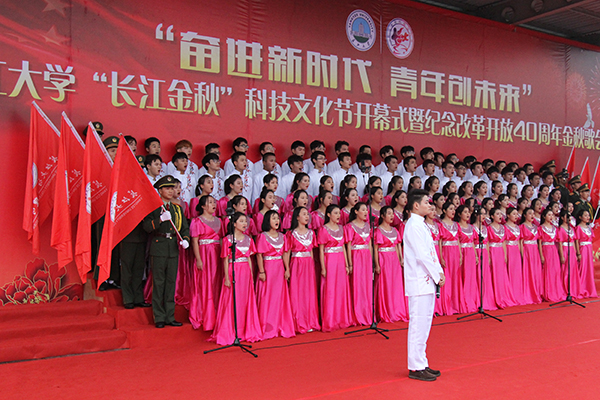 开幕式暨金秋歌会在西校区田径场举行,活动主题是“奋进新时代 青年创未来”,全校师生用青年的歌声和青春的活力为中国改革开放40周年献礼。歌会表演共分为历史的选择、春天的故事、时代的召唤三个乐章。活动于上午8点半正式拉开帷幕,下午5点结束。校领导朱业宏、郭海敏观看歌会,全校数千名师生参与活动。