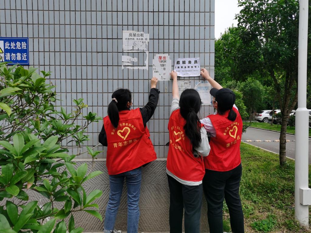 5月16日,院团委组织爱出发志愿者服务队的志愿者们参与清理校园小广告志愿服务活动。
