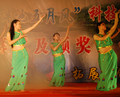 随后,精彩纷呈的文艺表演盛情上演。开场舞《oh》俏皮可爱,瞬间点燃了现场气氛;程畅的笛子独奏《琼楼玉宇》仿佛将观众带到了到了仙乐飘飘天境;随后校园歌手大赛优秀选手荣阿妮的一曲《天下无双》让观众叹服其纯熟的高音,引来阵阵掌声;舞蹈《月光下的凤尾竹》意境清雅优美,让人回味无穷;武术俱乐部的跆拳道表演让观众领略了武术的魅力;话剧汇演的获奖剧目《微尘的爱》结合“玉树地震”和“支教”两大主题,紧跟时代,生动诠释了当代老员工的社会责任感。晚会最后,吕政老师萨克斯演奏并演唱的《掌声响起来》引来掌声雷动,将晚会推向高潮。