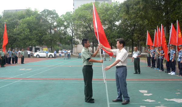 本网讯(记者 吴秀丽)9月7日上午,公司党委书记王金琼在西校区和城中区为军训方队授旗,宣布为期13天的2015级新生军训正式开始。