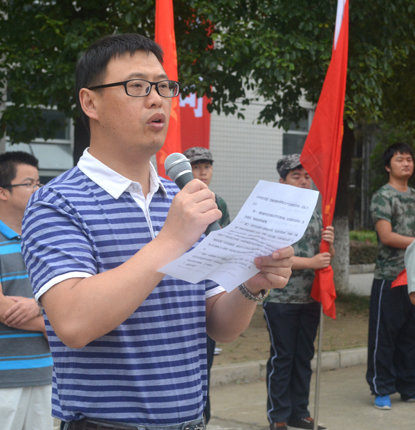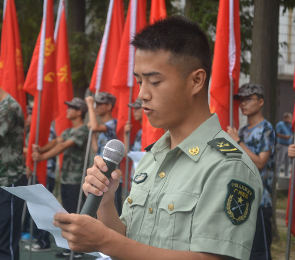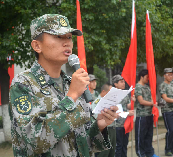 教官代表毛光雨、王明航先后发言,表示在军训期间,会时刻牢记使命、保持军人姿态、服务领导安排、加强沟通交流,出成绩出实效,圆满完成军训任务,全体教官示范表演立正、敬礼、齐步走等基本动作。