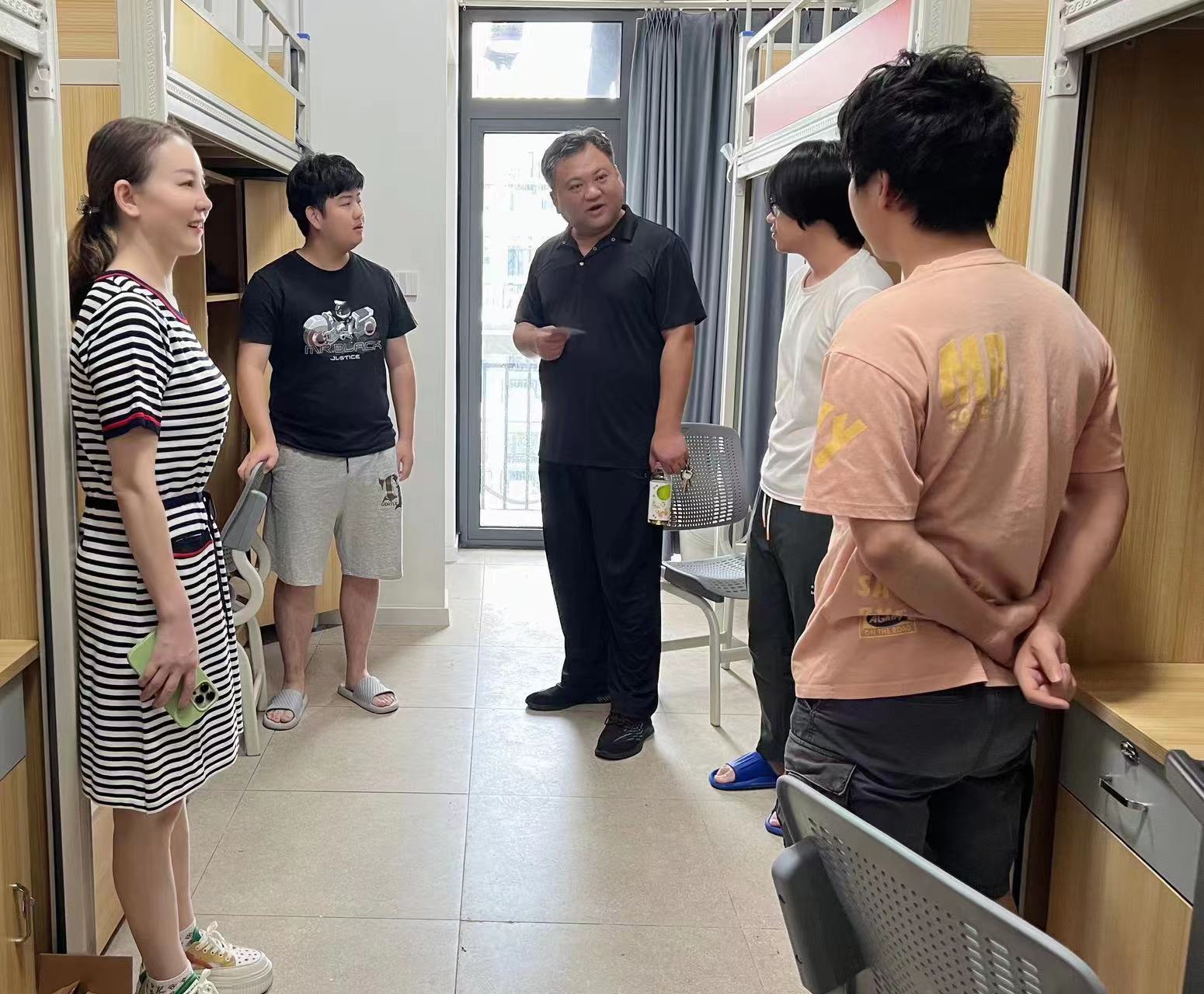 本网讯 (通讯员 成观雄)为了解暑期留校员工的学习、思想和生活情况,充分听取同学们的意见和建议,8月8日上午,太阳集团122cc文理公司党委副书记李则俊带队深入员工宿舍看望慰问暑期留校员工,为备战考公考研的同学们送去鼓励和祝福。员工工作部负责人、院(系)书记、辅导员老师陪同看望慰问。