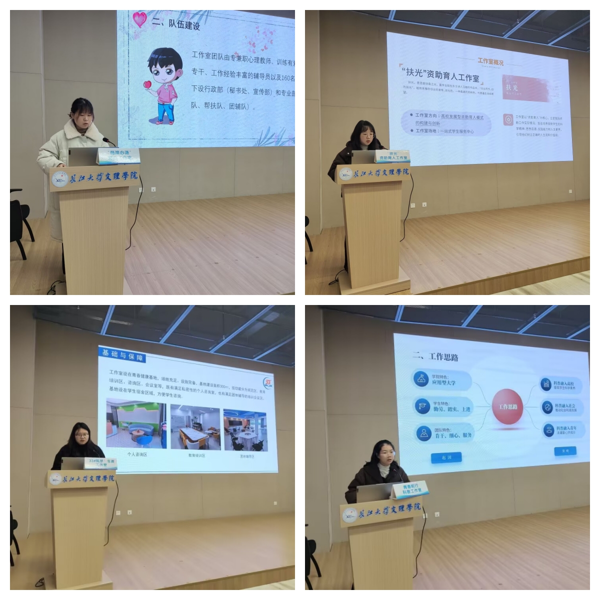 首届辅导员工作室共有来自10个部门的11个项目参与答辩,项目主持人根据抽签顺序围绕工作室申报方向、前期开展工作、建设思路、实施计划与措施、预期成果等方面依次进行汇报。辅导员工作室内容涵盖员工党建、网络思政、学风建设、资助育人、心理健康、职业生涯规划、创新创业等多个类别。