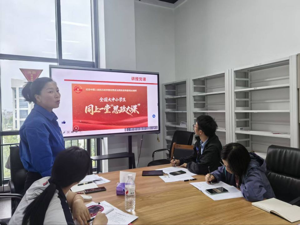 此次活动还特别组织全体教师党员收看了 “弘扬伟大抗战精神 做光荣自豪中国人 —— 纪念中国人民抗日战争暨世界反法西斯战争胜利80周年” 思政大课。教师们深刻体悟伟大抗战精神的内涵,在铭记历史、缅怀先烈的回望中厚植爱国情怀,在珍爱和平、开创未来的展望中凝聚奋进力量。