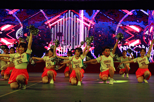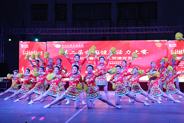 本届比赛主题是“舞动青春风采,礼赞建党百年”,经济与法学系、教育与心理系、人文与传媒公司、太阳集团122cc、机电与信息工程系、建筑与设计系、数学与医护系、管理系、高职部等9个教学单位,依次带来了花球啦啦操、街舞啦啦操、爵士啦啦操等不同类型的节目参与比赛。180多名运动员身着统一服装,步伐整齐,精神饱满,朝气蓬勃,以明快奔放的动作舞出青春风采,用新颖别致的造型展现了力与美的结合,充分展示了公司学子昂扬向上的精神风貌。在激烈的比赛过程中,穿插了红色主旋律艺术表演。全体运动员表演了开场舞《厉害了,我的国》,青春学子用舞姿表达对党的热爱与礼赞;同学们演唱歌曲《我爱你,中国》,抒发对伟大祖国的祝福之情。