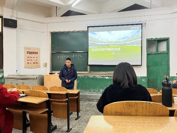 为优化体育教师教学素养,丰富教学手段,提升教学效果,贺老师运用信息化技术向老师们展示了一场生动的《足球运动概述》理论课程。贺老师结合自身多年的足球经历和对足球的深刻认识,以“探讨+讲解”的方式,利用幻灯片、图片和视屏多种信息化手段的展示,讲述了中国足球运动发展史、中国足球运动从辉煌逐渐没落,再到日韩足球冲出亚洲、走向世界的特例,并在最后对中国足球运动的未来发展提出深刻的反思!内容丰富,语言凝练,课堂氛围融洽,老师们在活动中积极交流,发表己见。贺老师运用信息化教学手段的首次尝试效果良好,取得各位老师的一致好评!