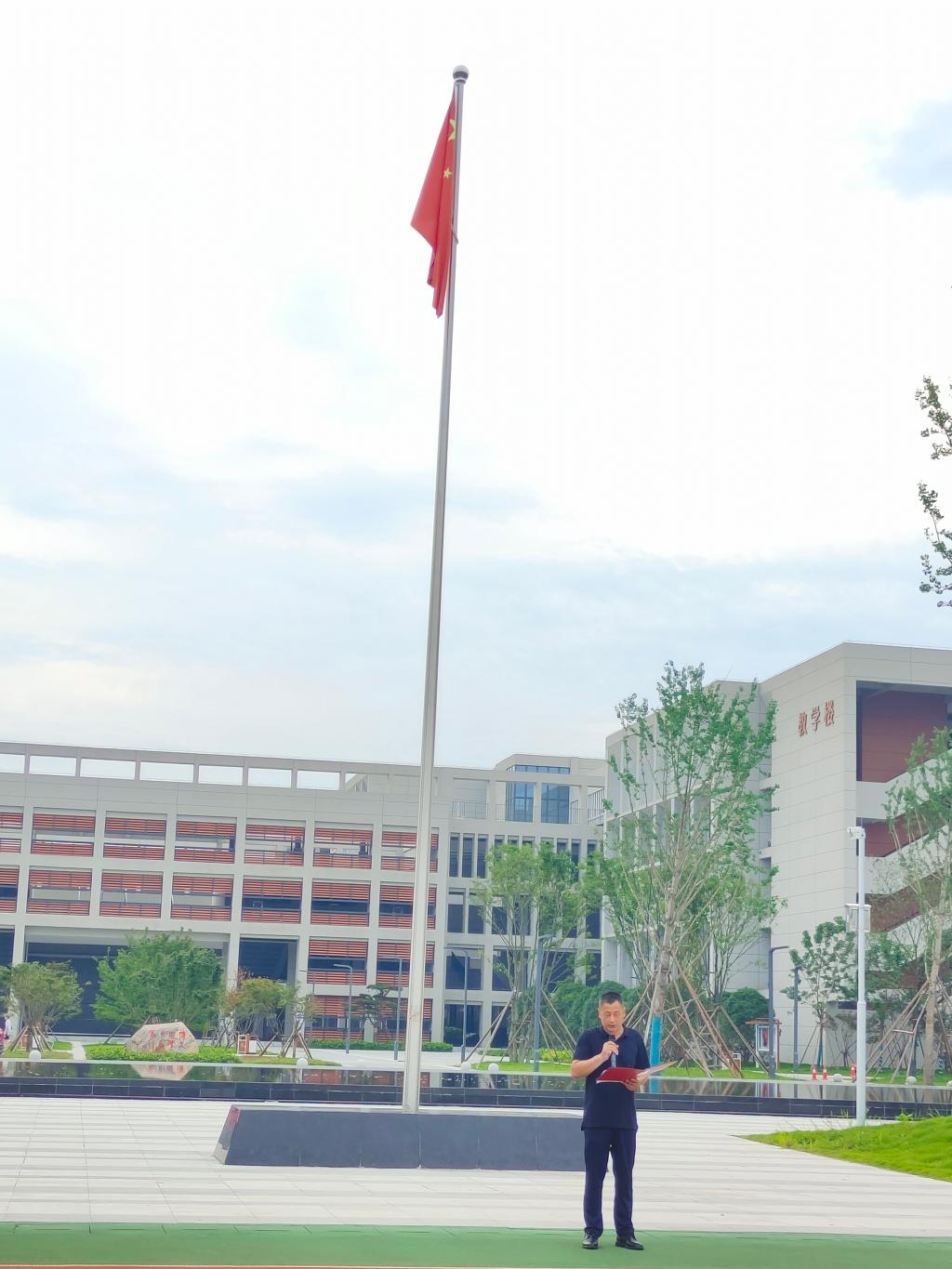 本网讯(通讯员 张欣)7月3日清晨,体育系举行以“红心向党,华彩少年”为主题的升旗仪式,全体师生齐聚国旗下,并邀请公司经理助理曹骥老师出席此次庄重仪式。