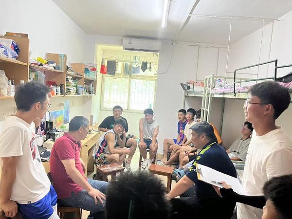 在员工寝室现场座谈会上,辅导员门世豪和体教5211班班主任徐勇对员工放假离校的相关要求进行讲解,并再次强调了“疫情防控”“防溺水”等方面的安全注意事项。