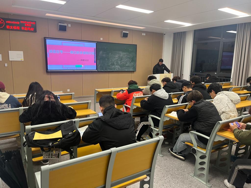 为了提高同学们的诚信意识,树立正确的考试观念,体育系各班班主任于2023年12月12日晚在C418召开了“诚信应考”主题班会。