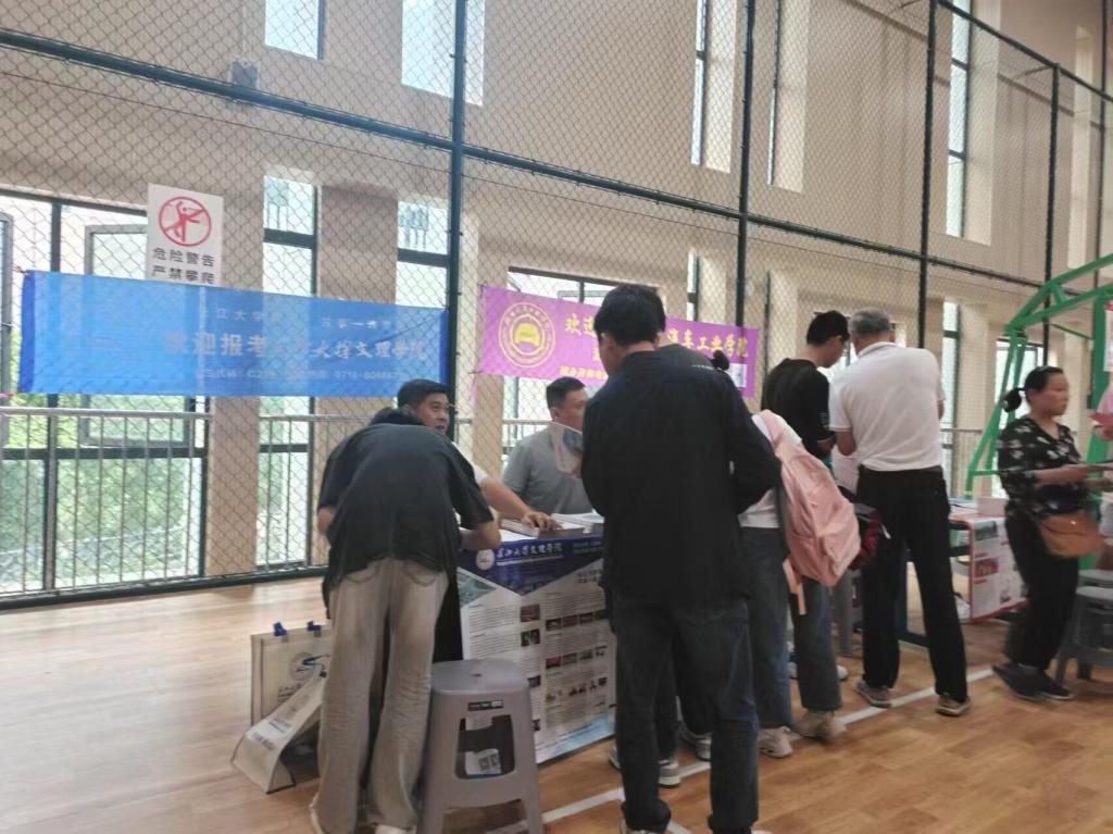 本网讯  6月29日,体育系党总支书记和主任一同来到五峰县土家族自治区高级中学参加招生咨询现场会。会场集聚了今年毕业的高三员工,咨询现场各高校宣传场面火爆。