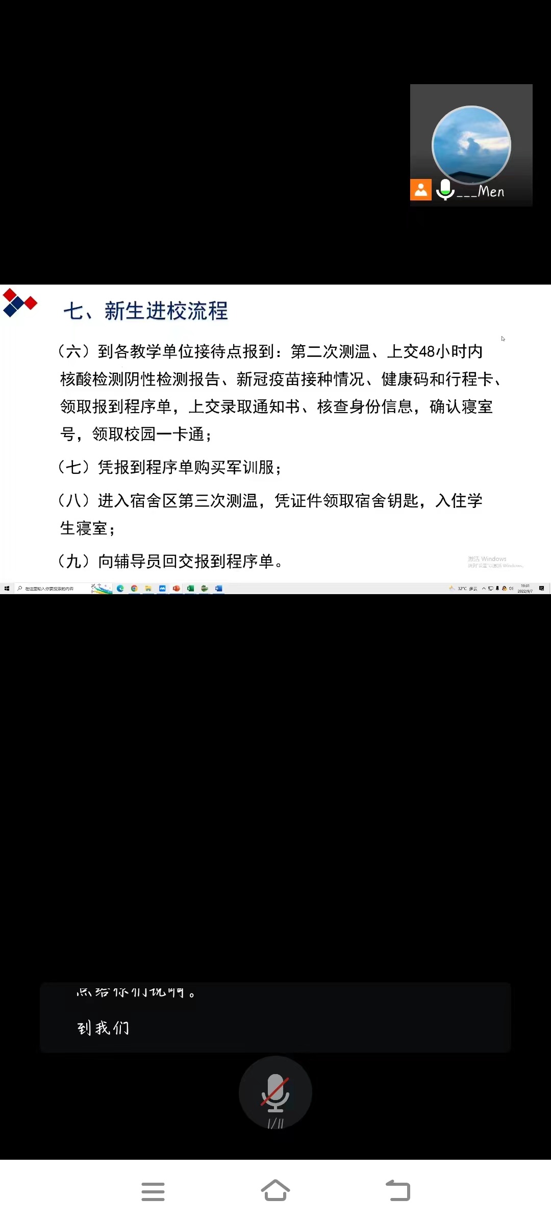 9月7日晚7点整,体育系辅导员门世豪召开2022级全体新生与家长新生线上见面会暨迎新问题答疑活动,此次活动的召开是为配合公司迎新工作的有效落实,是应对当下疫情防控常态下的必然要求,让每一名即将报到的新生知道疫情防控的重要性,了解公司对于贯彻疫情防控政策的坚决程度,并对报道流程有一个清晰的认识。