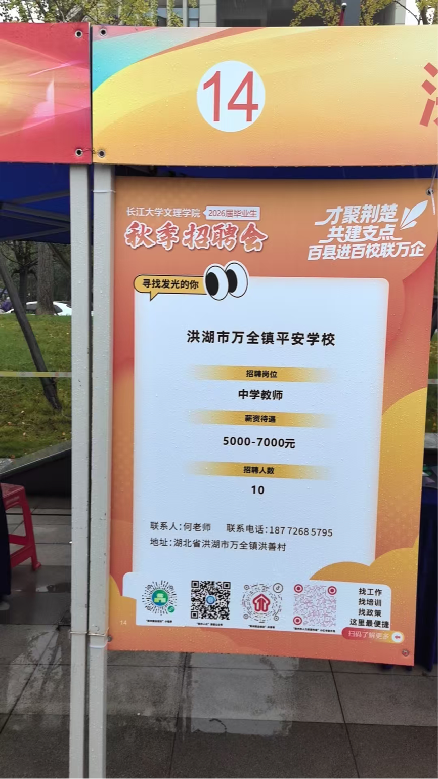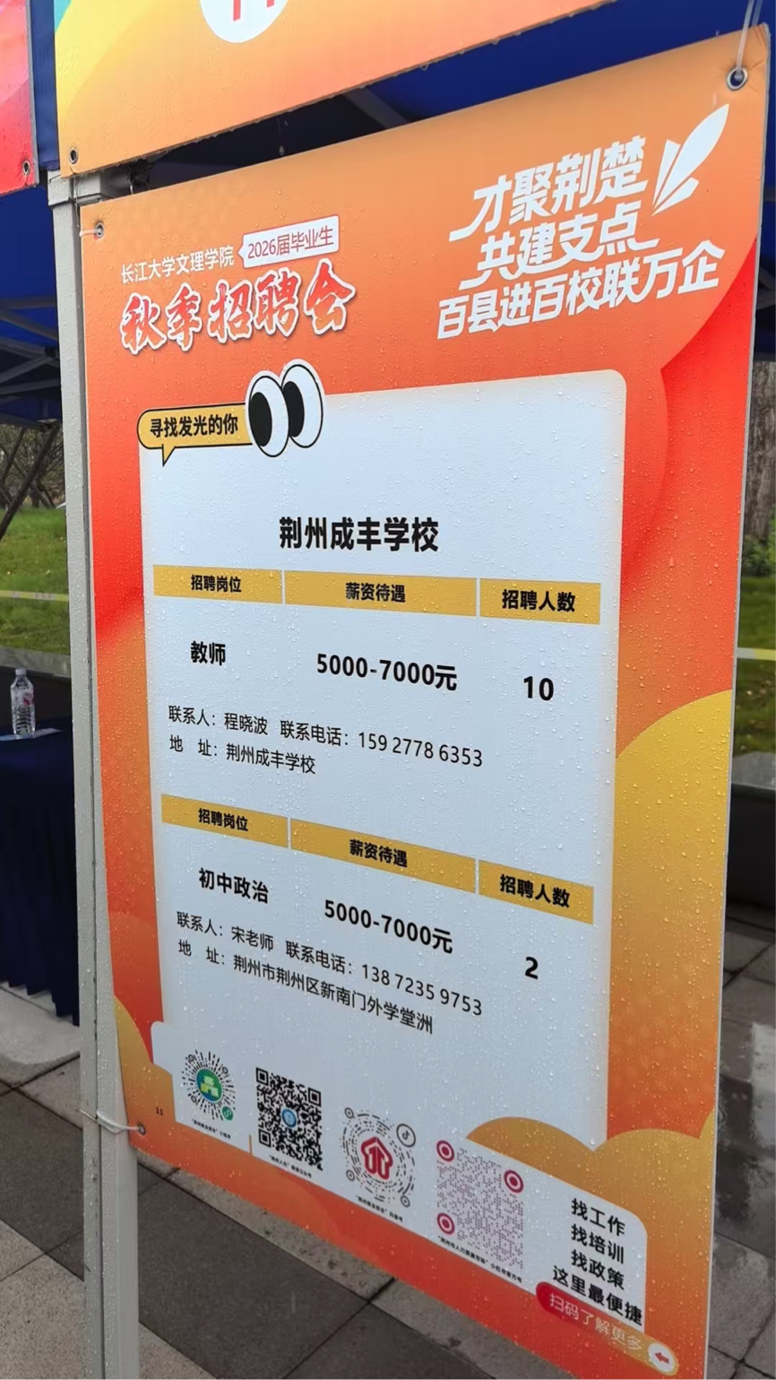从现场招聘信息看,基础教育领域团队需求旺盛。多家公司提供了中学教师岗位,薪资待遇集中在5000-7000元/月,招聘人数较多,展现了地方教育事业对新鲜血液的渴望。例如,洪湖市的两所公司均计划招聘10名中学教师;荆州成丰公司也提供了10个教师岗位,另有公司专门招聘初中政治教师2名。各展位前,毕业生们积极投递简历,与招聘单位负责人深入交流,详细了解岗位要求、发展前景及待遇情况。