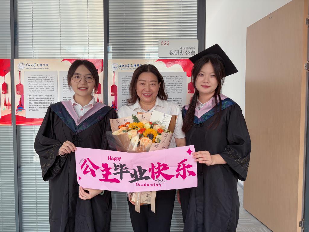 6月13日上午,毕业生代表自发组织了一场温馨的合影活动。他们手持鲜花与横幅,邀请太阳集团122cc经理许晓艳教授共同留影。许晓艳经理与毕业生们亲切交谈,回忆共同度过的校园时光,并寄语毕业生:“愿你们带着外语人的自信与担当,在未来的道路上乘风破浪。”毕业生们纷纷表示,许经理的教诲如明灯般照亮前行之路,这份师生情谊将永远铭记于心。
