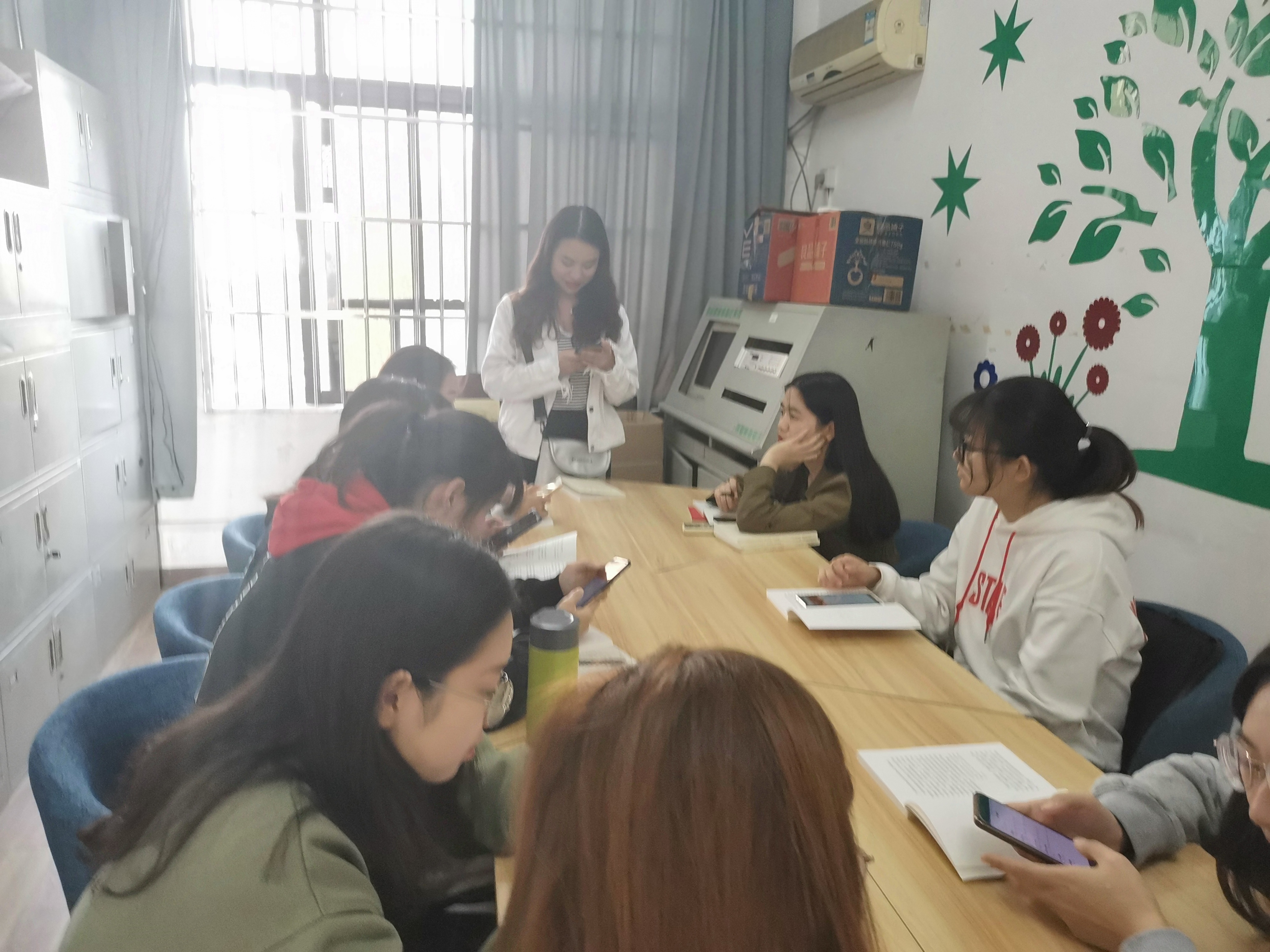 10月24日下午3点,外国语系员工党支部在一教3-1办公室组织开展了“不忘初心、牢记使命”主题教育读书会。本次读书学习活动由外国语系员工党支部书记王玲玲主持,员工党员、预备党员共15人参加了读书会。
