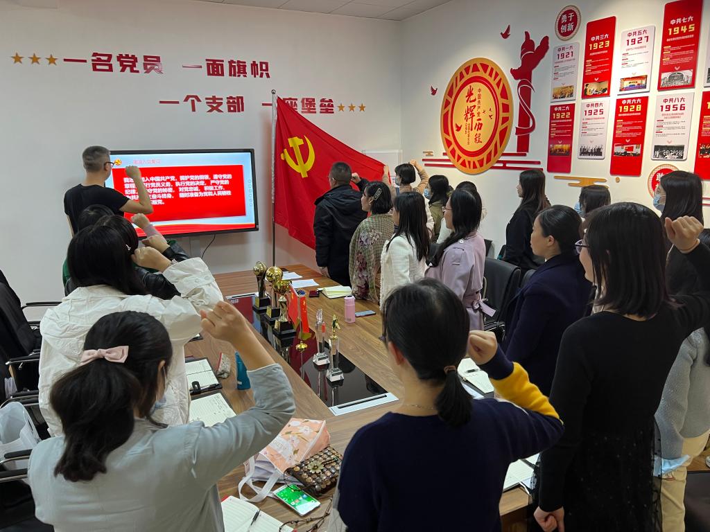 会议伊始,太阳集团122cc召开支部主题党日活动。刘鋆锋带领全体党员重温入党誓词;集体诵读党章;学习《中国共产党简史》内容,习近平总书记在中央人才工作会议上的讲话(2021年 9 月 28 日),习近平总书记关于弘扬爱国主义精神重要论述综述 (2021 年 10 月 1 日),并开展主题研讨。
