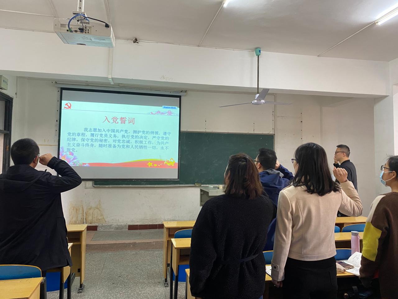 随后,党员教师开展支部主题党日活动。刘鋆锋副书记带领全体党员重温入党誓词,党员教师集体诵读党章第四章,了解和学习中国共产党第十九届中央委员会第五次全体会议公报和中共中央办公厅印发《关于巩固深化“不忘初心、牢记使命”主题教育成果的意见》,并展开讨论。
