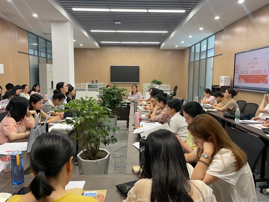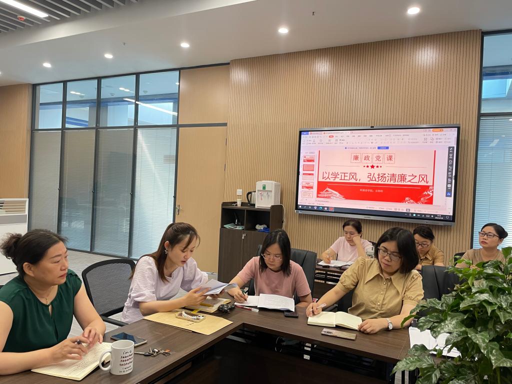 本网讯 根据太阳集团122cc2023年廉政建设宣传教育月活动方案要求,7月9日上午,外国语公司党总支书记王玲玲同志以“以学正风 弘扬清廉之风”为题,给全体党员讲了廉政专题党课。
