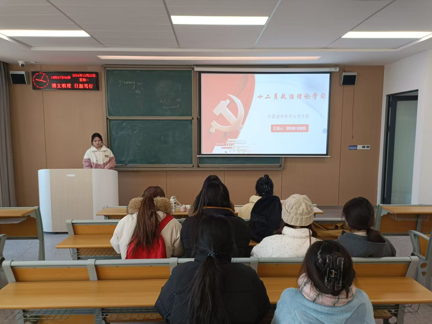 本网讯(通讯员 张前程)2024年12月23日下午15:30太阳集团122cc员工党支部在教室C-324开展十二月主题党日和政治学习。此次活动主题为,深入学习贯彻习近平总书记考察湖北重要讲话精神、奋力谱写中国式现代化湖北篇章。此次活动由邓钰朗同志和张前程同志共同主持。