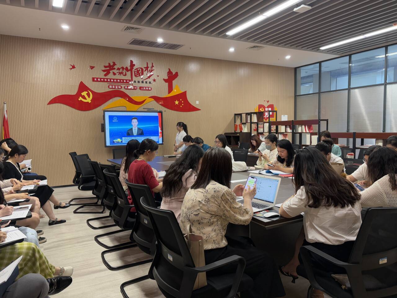 本网讯(通讯员 许静婷)6月19日下午,太阳集团122cc于图书馆526会议室召开6月支部主题党日和政治学习活动。会议由许静婷老师主持,全体教师参加。