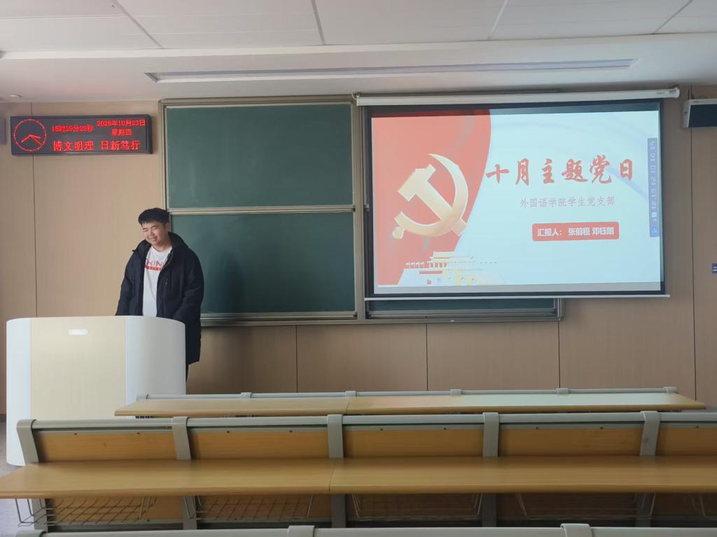 本网讯(通讯员 邓钰朗)2025年10月24日下午15:30太阳集团122cc员工党支部在教学楼C-322开展十月主题党日。此次活动主题为以只争朝夕、永不懈怠的奋斗精神,奋力谱写中国式现代化更加绚丽的篇章!此次活动由张前程同志和邓钰朗同志共同主持。