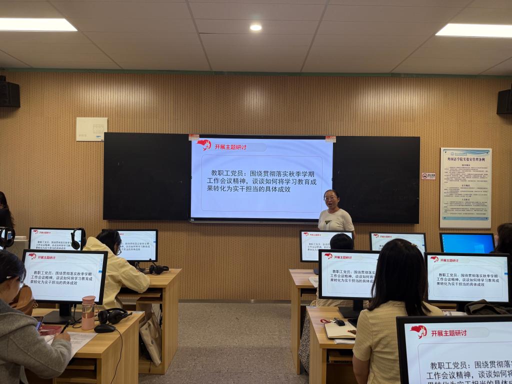 全体党员结合工作实际,围绕贯彻落实秋季学期工作会议精神,交流研讨如何将学习教育成果转化为实干担当的具体成效。