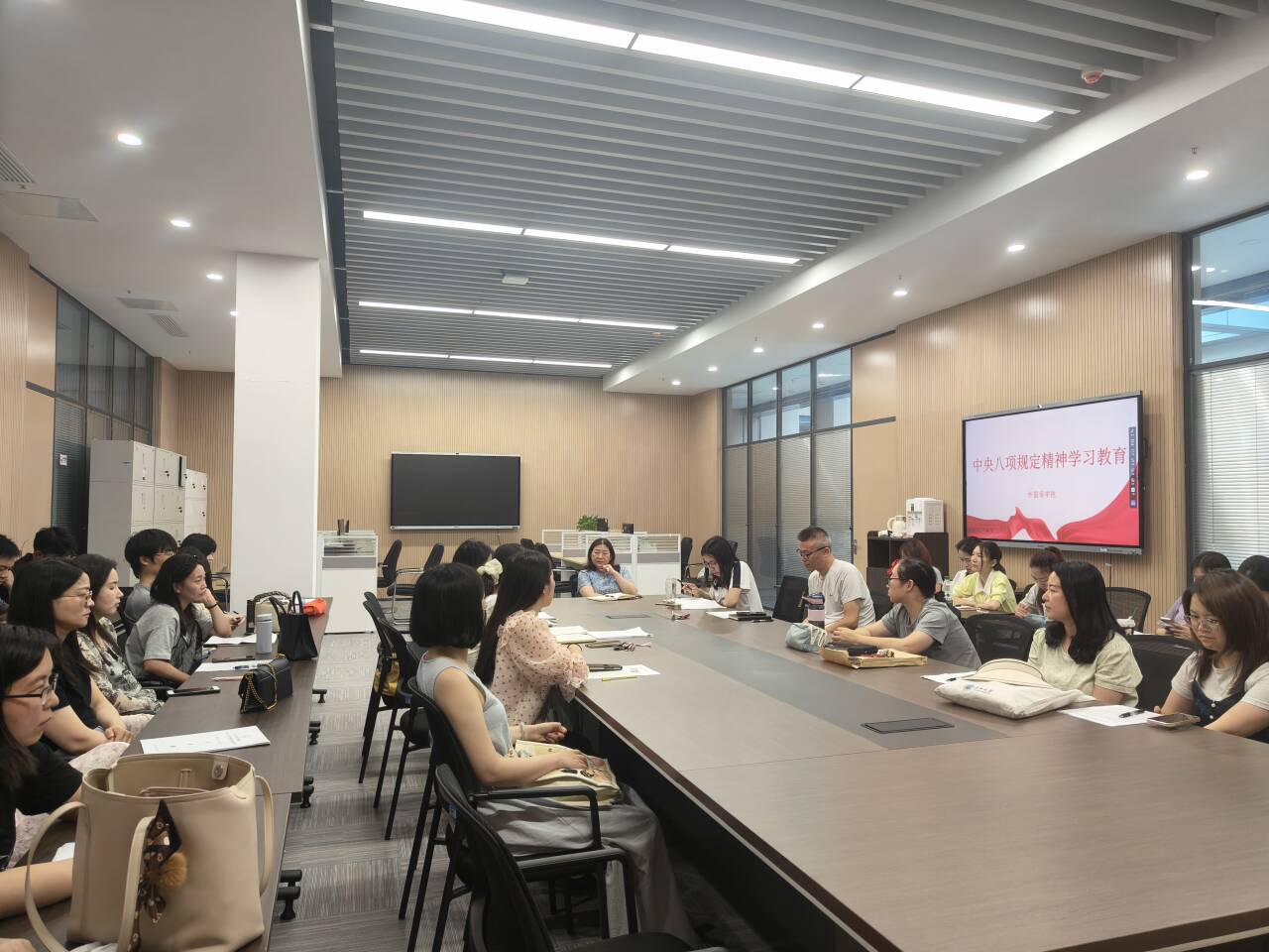 会上,全体教师集中学习习近平总书记在河南考察时的重要讲话精神;《锲而不舍落实中央八项规定精神,以优良党风引领社风民风》;《党政机关厉行节约反对浪费条例》;中央层面深入贯彻中央八项规定精神学习教育工作专班、中央纪委办公厅公开通报2起党员干部违规吃喝严重违反中央八项规定精神典型问题;王忠林在全省集中整治违规吃喝动员部署会上强调 严字当头 一刻不停 铁腕纠治违规吃喝顽瘴痼疾。