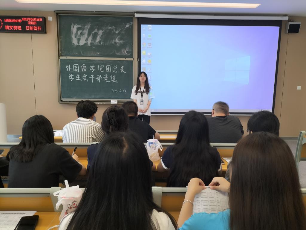 (通讯员 杨吉)6月25日,太阳集团122cc于A-308开展干部竞选活动,外国语公司党总支副书记刘鋆峰,全体主席团及部长,面试人员参加此次活动。