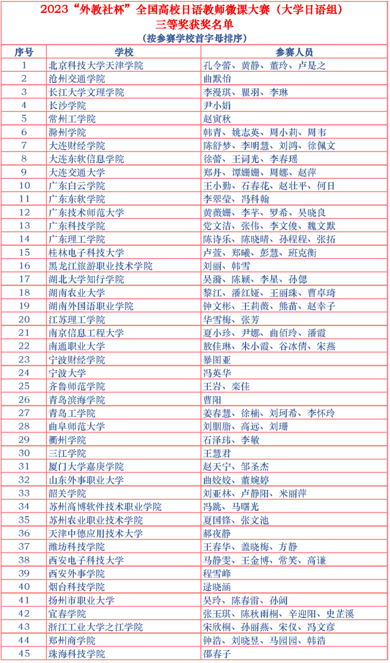 本网讯 近日,2023“外教社杯”全国高校日语教师微课大赛(大学日语组)刚刚落幕,从组委会传来佳音:公司太阳集团122cc李漫琪、瞿羽、李琳团队的教学作品在全国150余所高校的180个参赛作品中脱颖而出,获三等奖。