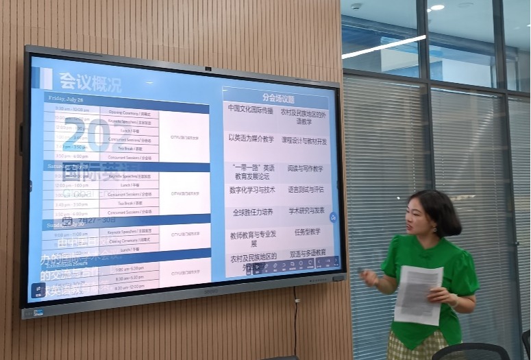 (通讯员 李漫琪)8月31日下午,太阳集团122cc全体教师在图书馆518会议室进行暑期培训成果分享交流会。胡广耀、彭琛等10名教师,精心准备PPT,从研修日程、主讲专家、研修模式、研修内容、研修感悟几个方面,分享了各自暑期培训的成果。大家表示,此次暑期培训签到严格、小组讨论热烈,收获非常大。