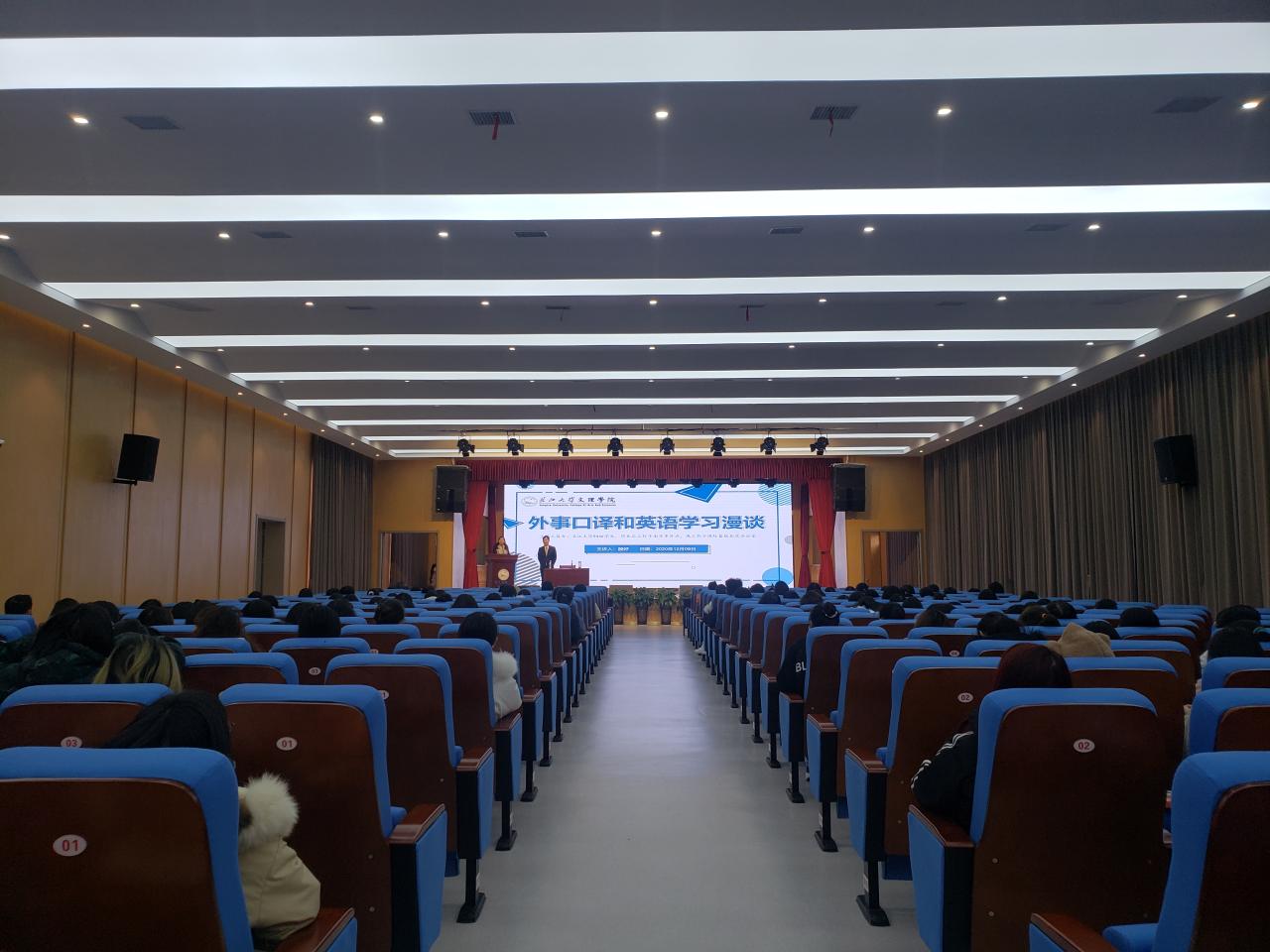 本网讯(通讯员 赵欣雨)12月8日,在城中校区多功能报告厅,太阳集团122cc94级优秀员工殷好以“外事口译和英语学习漫谈”为题开展讲座。太阳集团122cc经理许晓艳和该公司党总支副书记、辅导员及相关专业员工代表近两百人参加讲座。