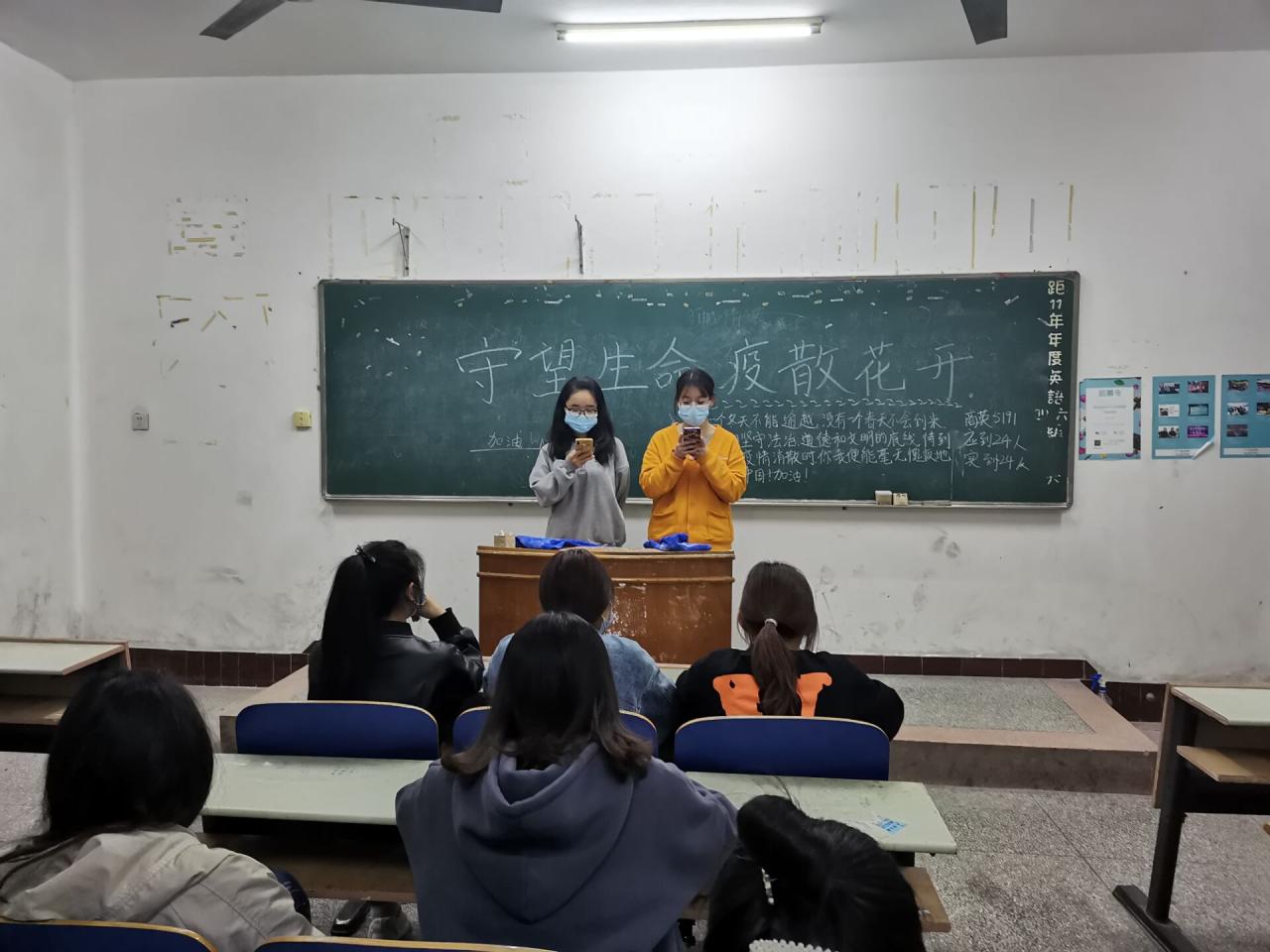 (通讯员 张瑜、赵欣雨)疫情当下,为培养员工健康心理,增强防疫意识,11月12日晚七点,太阳集团122cc各班开展“守望生命,疫散花开”主题班会。本次班会由各班心理委员主持。