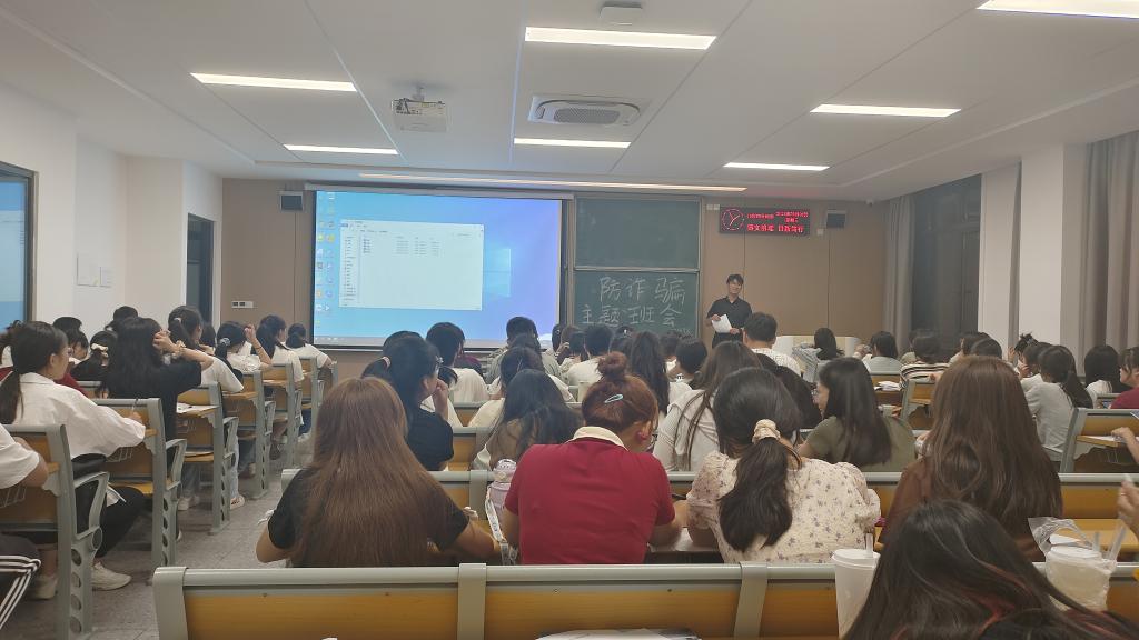 首先,通过观看最新的网络诈骗视频,让员工了解到目前诈骗形式的多样性,认识到身边潜在的被骗危险。其次,辅导员详细的讲述了校园中常见的诈骗手段,涵盖了电话诈骗、网络诈骗、刷单诈骗等多种类型。通过实际案例和生动的语言,向同学们展示了这些诈骗手段的特点和常见套路,并强调大家需保持警惕,并不轻易相信陌生人的信息和请求。