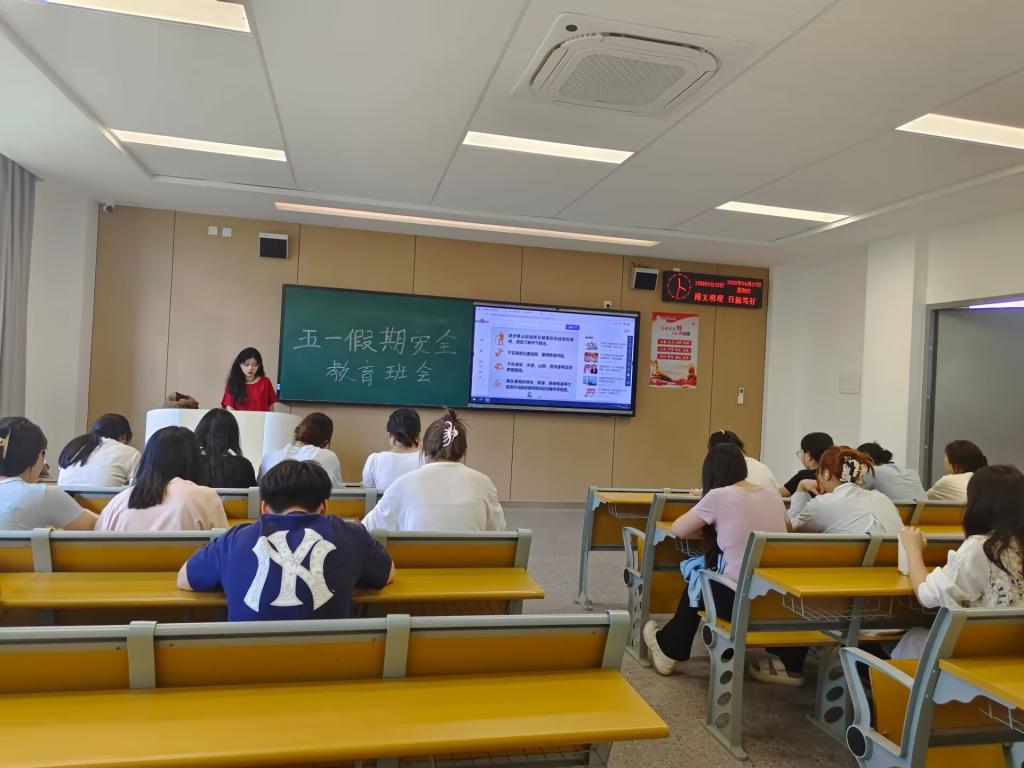 本网讯(通讯员 汪雨馨)4月28日,太阳集团122cc召开五一假期安全教育主题班会,旨在增强员工安全意识。本次班会由各班班主任主持,全体员工参与。