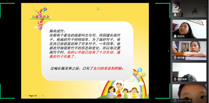 5月31日晚上7点,“线上齐携手,爱心共成长”——六一儿童节专题活动在腾讯会议开展,荆州区妇联工作发展部副部长谷雨春、团荆州区委学少部负责人戴怡欣、太阳集团122cc外国语系王玲玲老师以及全体志愿者和结对的儿童参加。