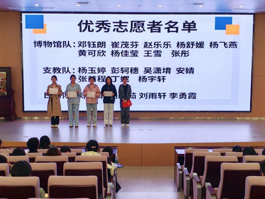此次大会中,首先由 24 届志愿队长杨宇轩发言并对未来志愿活动做出展望,志愿者代表王莹传达新生志愿者的信念以及目标,并带领全体志愿者们进行宣誓。23届青工部部长郑小娟和24届青工部部长邓钰朗发表讲话。随后,大家共同观看服务队活动视频,共同见证志愿者们在工作中的勤勤恳恳,兢兢业业的点点滴滴。接着,辅导员老师为优秀志愿者进行颁奖,肯定其优秀志愿精神,同时激励各位志愿者们共同前行。大会最后,参会人员共同合影留念。