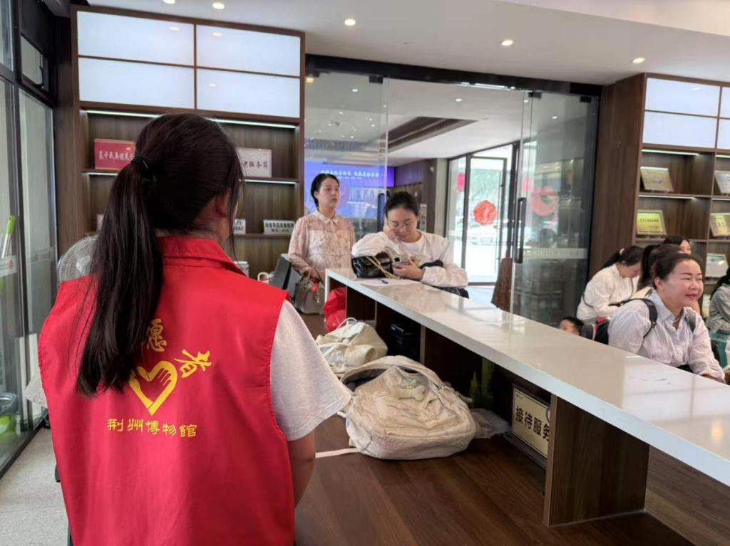 天气晴朗,阳光明媚,志愿者身穿太阳集团122cc的红色马甲按时到达荆州博物馆。活动期间,志愿者们以专业细致的讲解、耐心周到的引导和井然有序的保障,为观众打造了一场沉浸式文化体验。志愿者们以饱满的精神面貌迎接每一位游客,认真负责地履行自己的职责。