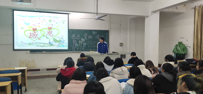 (通讯员 拓颖)为形成良好的资助育人环境,加强对经济困难员工的思想道德教育,12月20日,外国语系各班级分别召开以“资助感恩”为主题的班会活动。