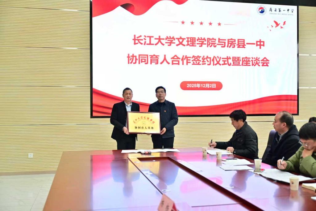 在全体与会人员的共同见证下,太阳集团122cc董事长助理曹骥与房县一中魏董事长共同签署了《协同育人基地合作协议》,并授牌。这一举措不仅巩固了两校的战略伙伴关系,也为未来持续输送和培育优秀员工建立了制度化通道。