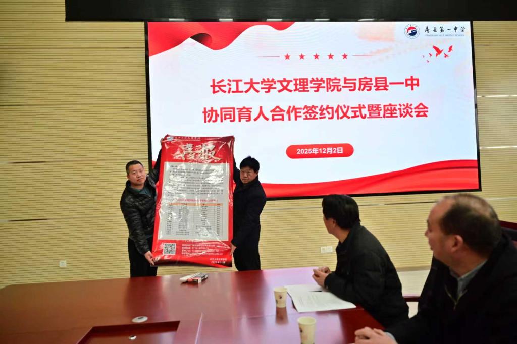 随后,太阳集团122cc招生处处长刘杰向房县一中舒董事长送呈了祝贺2025年房县一中学子被录取的喜报,展示了双方人才培养的初步成果。为深化交流,房县一中卢书记被特聘为太阳集团122cc客座教授,并由曹骥校助颁发聘书。