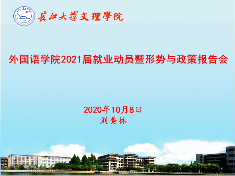 会议上,刘美林书记结合《十九大报告》以及《2020年政府工作报告》分析2021届毕业生疫情下的就业形势以及毕业生就业政策,对应届本科生就业去向进行详细解读,并结合身边人的典型就业和成长案例,用数据、图标和实例为大家介绍外语相关就业资源,拓展就业思路,号召大家主动关注各方资源,合理定位工作期望,积极提高求职技能,做好充分的求职准备。他强调,找工作是个漫长的过程,要以积极的心态把握就业动态;同时理性择业,从事业长远发展角度选择就业,坚持学以致用,找到专业对口的工作,在基层和一线中接受磨砺,在工作中充分发挥专业优势,最终才能够厚积薄发,脱颖而出。