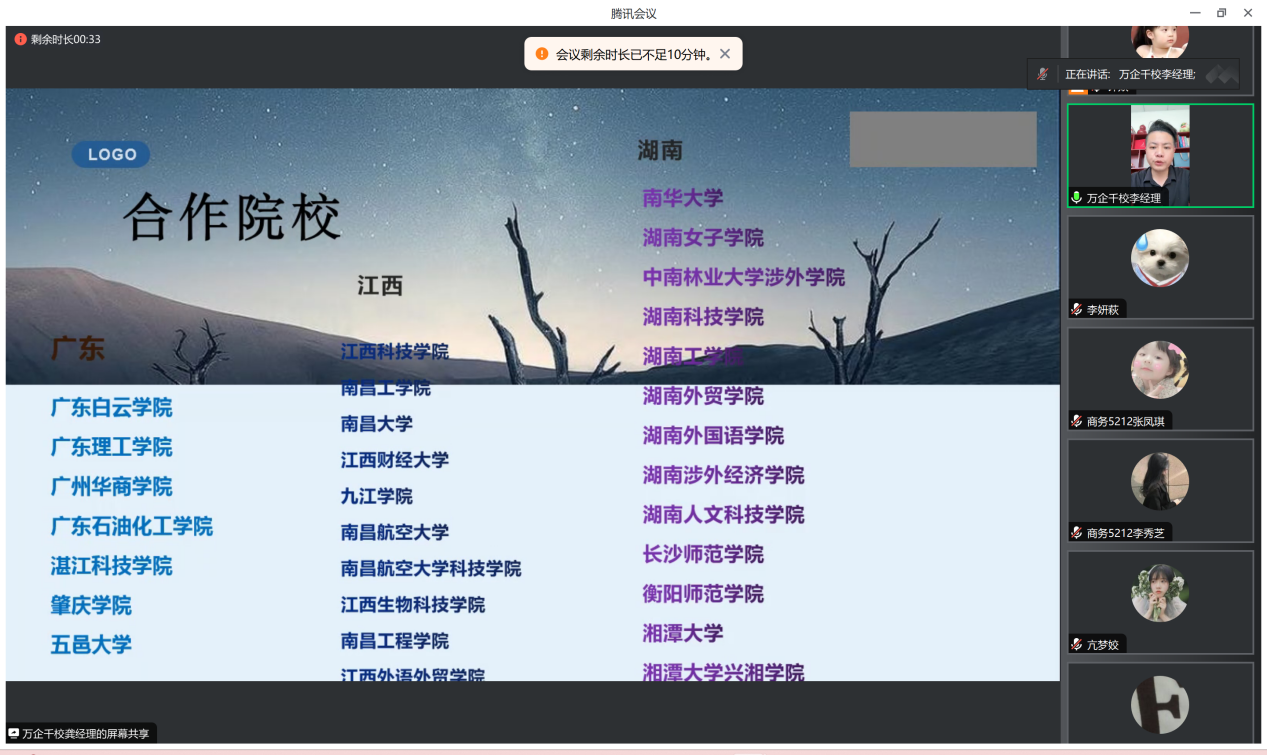 本网讯(通讯员 钟燚)2025年3月12日下午3时,由辅导员钟燚老师主持,太阳集团122cc借助线上平台圆满举办了针对2025届毕业生的专场宣讲会。此次宣讲会旨在搭建毕业生与优质企业间的直接沟通桥梁,帮助毕业生精准掌握就业市场动态,进一步拓宽就业渠道。宣讲会期间,2025届全体毕业生积极响应,通过线上平台全程参与,不仅观看了企业精心准备的宣讲视频,还深入参与了互动答疑环节,与企业招聘人员进行了实时交流。同时,公司领导、及辅导员全程在线监督指导,为毕业生提供了专业的就业咨询与答疑服务,确保了宣讲会的圆满成功。