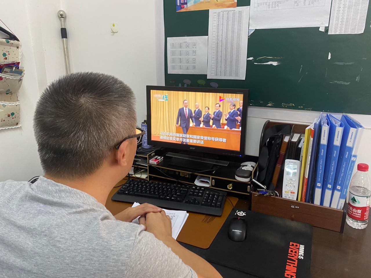 (通讯员 雷琦)为响应国家表彰抗疫英雄,哀悼牺牲烈士和逝世同胞的号召,2020年9月8日上午10点,外国语公司党总支组织全体师生线上观看全国抗击新冠肺炎表彰大会。本次表彰大会旨在使同学们提高思想认识,致敬抗疫精神,领略英雄风采。