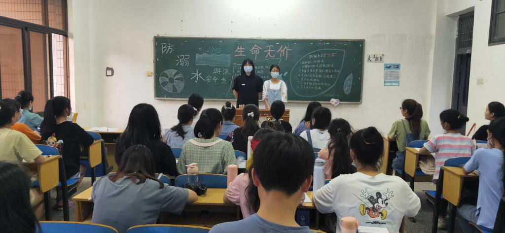 班会伊始,班委用ppt播放防溺水安全教育视频及安全提示,提醒同学们不要私自下水游泳,不熟悉水性的员工不擅自下水施救。如遇危险,施救者应将自身安全放在第一位,并及时拨打120寻求援助。
