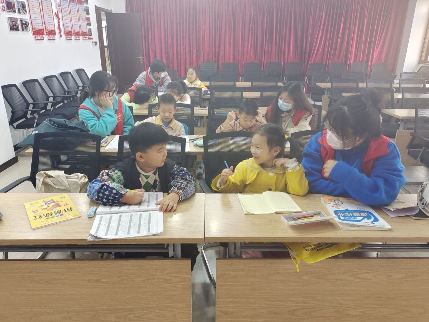 活动期间,志愿者们教小朋友写字、做算术题,面对小朋友们的提问,他们耐心倾听,认真解答。在教学过程中,志愿者们被孩子们的天真和热情所感染。最后志愿者们和小朋友进行了合影留恋。