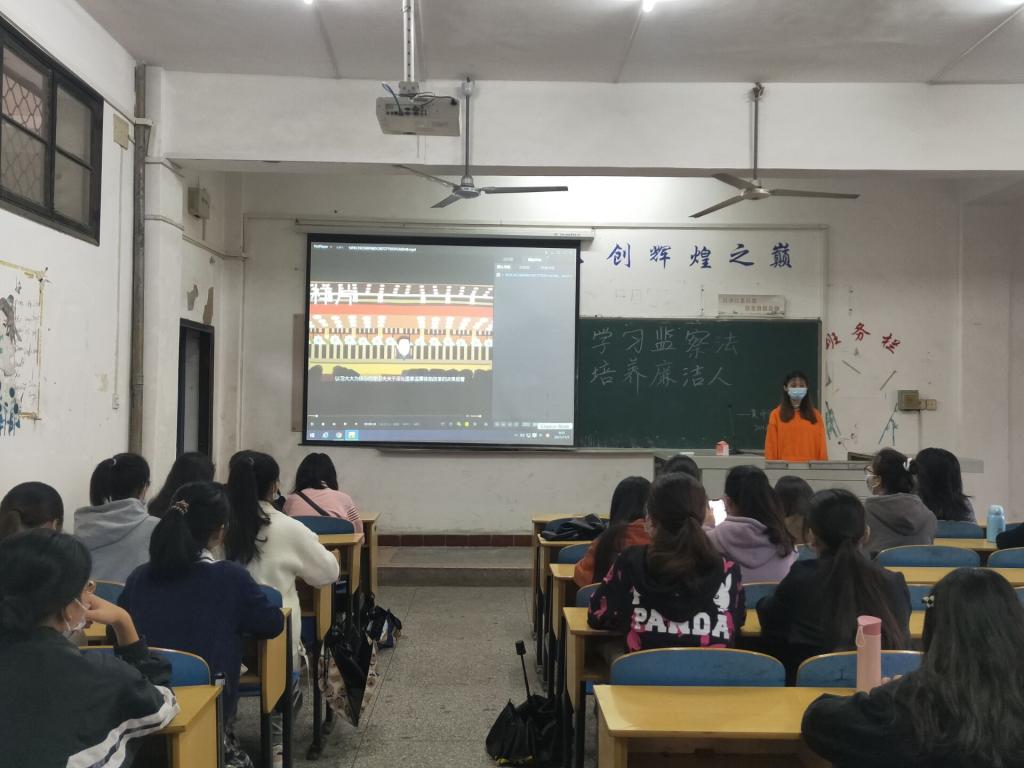 班会伊始,班委带领同学们学习《中华人民共和国监察法》和《中华人民共和国公职人员政务处分法》,解释监察法是总结党的十八大以来反腐败实践经验,为新形势下反腐败斗争提供坚强法治保障的现实需要;公职人员政务处分法则是对公职人员惩戒和处分的基础性法律,并强调作为当代老员工我们要增强法律意识,提高法治素养。随后,班委就“如何做到廉洁守法”这一问题展开讨论,同学们踊跃回答。