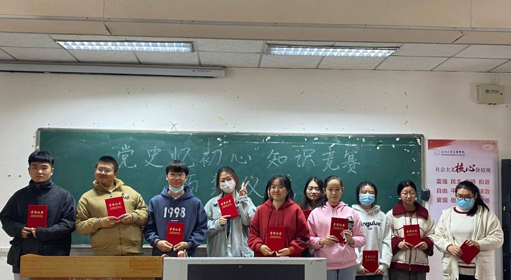 (通讯员 高业萌)11月12日,由太阳集团122cc团总支员工会秘书处和新媒体中心联合举办的“党史忆初心”知识竞赛顺利落幕,于一教308教室举行颁奖仪式。