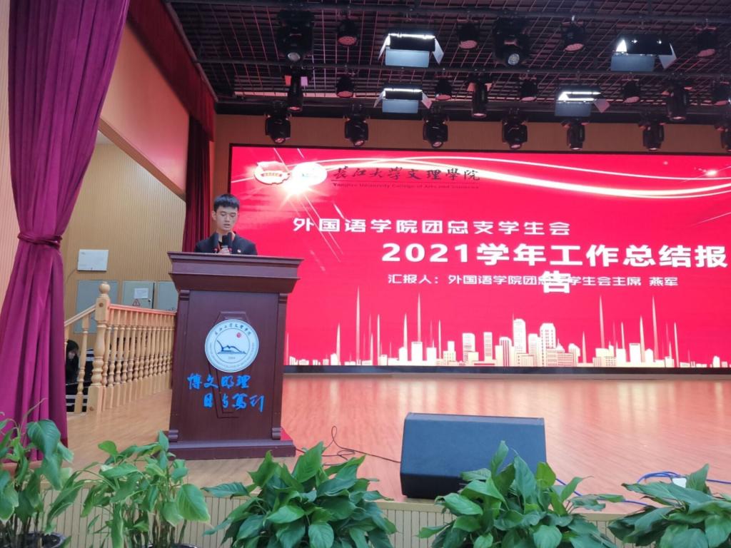 大会伊始,主席燕军做工作总结报告,对员工会本学期取得的良好成绩表示肯定,赞扬同学们积极创新,不断探索的精神。同时指出问题,他强调大家应落实好工作,注重反思,提高工作效率。